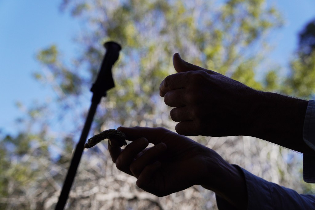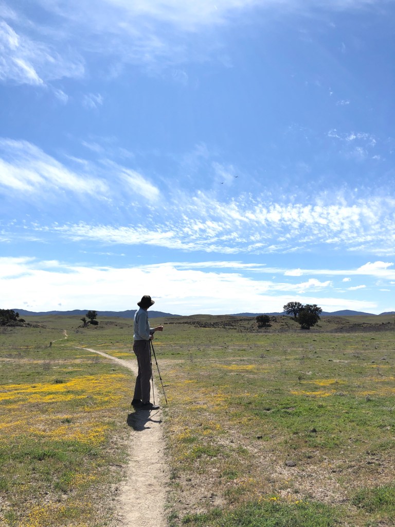 I didn’t have time to gloat, because thirty minutes later when we were crossing our first road, Kyle wanted to power up with a quick snack, (eye roll, we just left camp) I discovered that I had forgotten my water. I told him since we were so close to camp, that I would call Tom to bring me the water I had set aside. Kyle didn’t want me to call, but I did anyway and five minutes later Tom arrived with my two water bottles. It wasn’t like me to forget anything, especially water. I must have been thrown off because of having a new hiking companion. That’s what I am going to blame it on. I hate to think of karma.